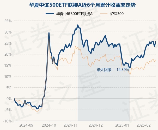 证券之星消息,2月19日,华夏中证500ETF联接A最新单位净值为0.7083元,累计净值为0.7083元,较前一交易日上涨1.68%。历史数据显示该基金近1个月上涨6.1%,近3个月上涨0.24%,近6个月上涨25.47%,近1年上涨16.55%。该基金近6个月的累计收益率走势如下图: