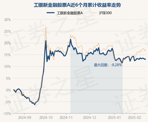 证券之星消息,2月19日,工银新金融股票A最新单位净值为2.543元,累计净值为2.543元,较前一交易日上涨0.12%。历史数据显示该基金近1个月下跌0.66%,近3个月下跌2.19%,近6个月上涨13.12%,近1年上涨19.39%。该基金近6个月的累计收益率走势如下图:
