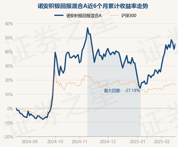 证券之星消息,2月19日,诺安积极回报混合A最新单位净值为2.408元,累计净值为2.408元,较前一交易日上涨2.56%。历史数据显示该基金近1个月上涨17.81%,近3个月上涨6.41%,近6个月上涨45.32%,近1年上涨38.23%。该基金近6个月的累计收益率走势如下图: