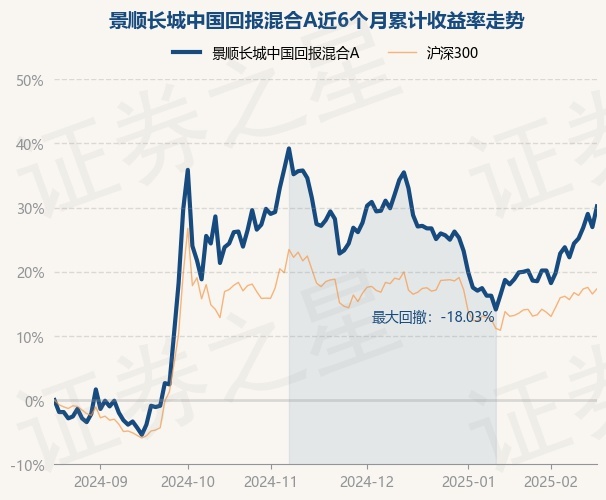 证券之星消息,2月19日,景顺长城中国回报混合A最新单位净值为1.328元,累计净值为1.765元,较前一交易日上涨2.55%。历史数据显示该基金近1个月上涨8.59%,近3个月上涨1.68%,近6个月上涨30.2%,近1年上涨11.13%。该基金近6个月的累计收益率走势如下图: