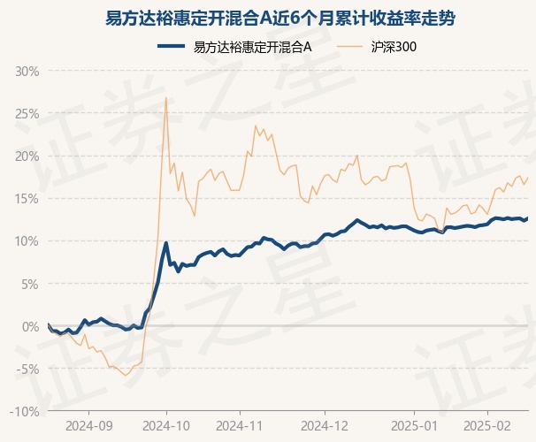 证券之星消息,2月19日,易方达裕惠定开混合A最新单位净值为1.7671元,累计净值为2.5251元,较前一交易日上涨0.23%。历史数据显示该基金近1个月上涨0.93%,近3个月上涨2.92%,近6个月上涨12.56%,近1年上涨11.88%。该基金近6个月的累计收益率走势如下图: