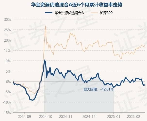 证券之星消息,2月19日,华宝资源优选混合A最新单位净值为3.212元,累计净值为3.321元,较前一交易日上涨0.22%。历史数据显示该基金近1个月下跌3.51%,近3个月下跌4.15%,近6个月下跌1.74%,近1年上涨3.51%。该基金近6个月的累计收益率走势如下图: