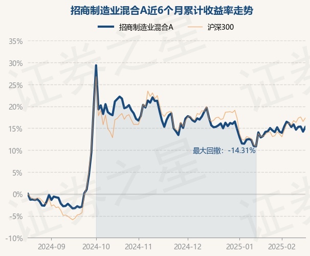 证券之星消息,2月19日,招商制造业混合A最新单位净值为2.092元,累计净值为2.212元,较前一交易日上涨0.92%。历史数据显示该基金近1个月上涨0.97%,近3个月下跌1.41%,近6个月上涨15.26%,近1年上涨17.07%。该基金近6个月的累计收益率走势如下图:
