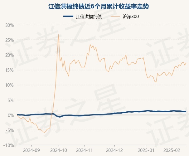 证券之星消息,2月19日,江信洪福纯债最新单位净值为1.0473元,累计净值为1.3711元,较前一交易日上涨0.06%。历史数据显示该基金近1个月下跌0.02%,近3个月上涨1.06%,近6个月上涨1.12%,近1年上涨3.21%。该基金近6个月的累计收益率走势如下图: