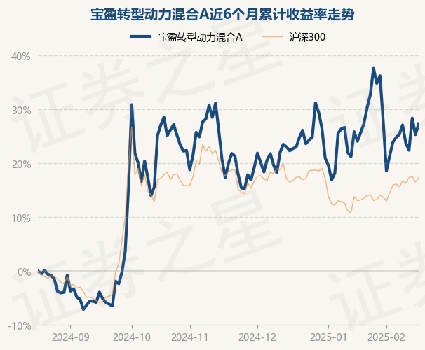 证券之星消息,2月19日,宝盈转型动力混合A最新单位净值为1.1943元,累计净值为1.1943元,较前一交易日上涨1.61%。历史数据显示该基金近1个月上涨0.01%,近3个月上涨6.17%,近6个月上涨27.34%,近1年上涨34.0%。该基金近6个月的累计收益率走势如下图: