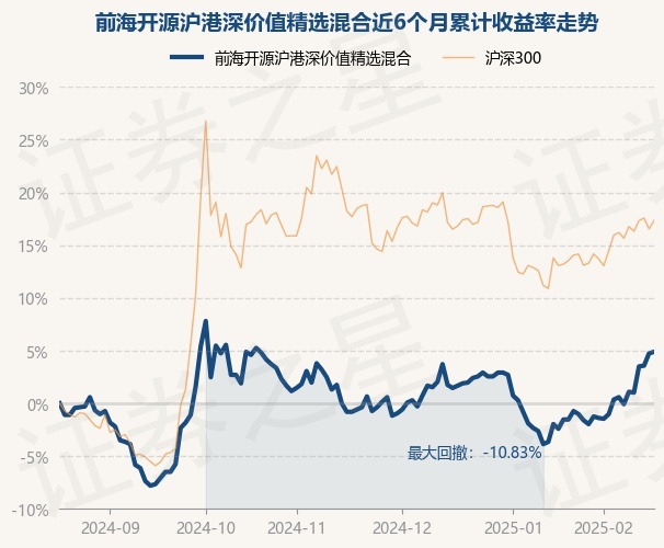 证券之星消息,2月19日,前海开源沪港深价值精选混合最新单位净值为1.438元,累计净值为1.608元,较前一交易日上涨0.14%。历史数据显示该基金近1个月上涨6.52%,近3个月上涨5.5%,近6个月上涨4.89%,近1年上涨11.91%。该基金近6个月的累计收益率走势如下图: