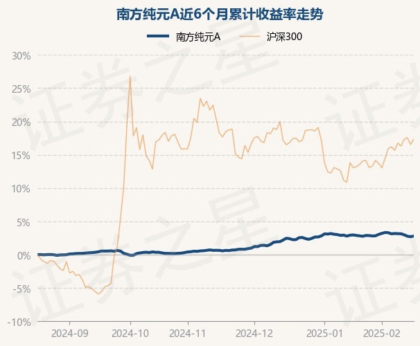 证券之星消息,2月19日,南方纯元A最新单位净值为1.093元,累计净值为1.3051元,较前一交易日上涨0.09%。历史数据显示该基金近1个月下跌0.04%,近3个月上涨2.14%,近6个月上涨2.79%,近1年上涨4.86%。该基金近6个月的累计收益率走势如下图: