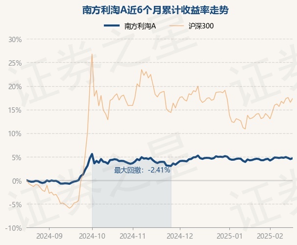 证券之星消息,2月19日,南方利淘A最新单位净值为1.6549元,累计净值为1.6549元,较前一交易日上涨0.16%。历史数据显示该基金近1个月上涨0.19%,近3个月上涨0.75%,近6个月上涨4.67%,近1年上涨7.32%。该基金近6个月的累计收益率走势如下图: