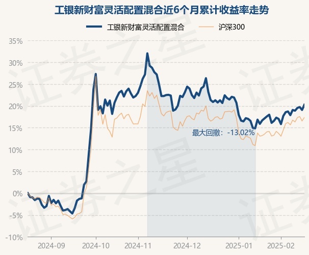 证券之星消息,2月19日,工银新财富灵活配置混合最新单位净值为2.113元,累计净值为2.113元,较前一交易日上涨1.0%。历史数据显示该基金近1个月上涨2.67%,近3个月下跌1.81%,近6个月上涨20.26%,近1年上涨15.72%。该基金近6个月的累计收益率走势如下图: