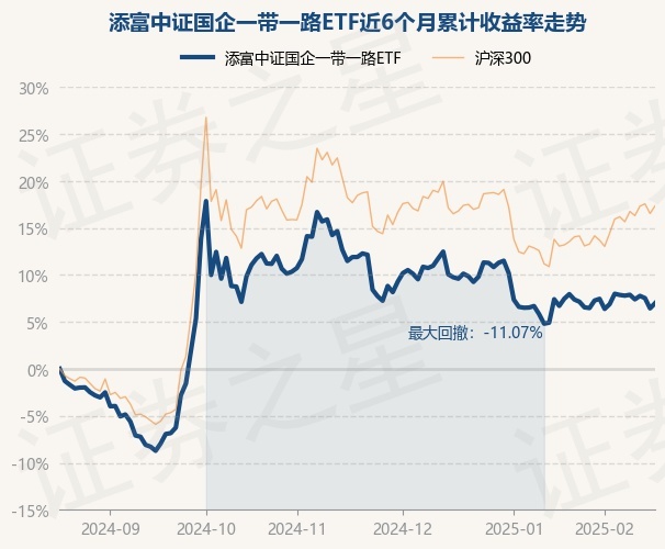 证券之星消息,2月19日,添富中证国企一带一路ETF最新单位净值为1.2576元,累计净值为1.2576元,较前一交易日上涨0.52%。历史数据显示该基金近1个月下跌0.89%,近3个月下跌4.39%,近6个月上涨6.99%,近1年上涨11.1%。该基金近6个月的累计收益率走势如下图: