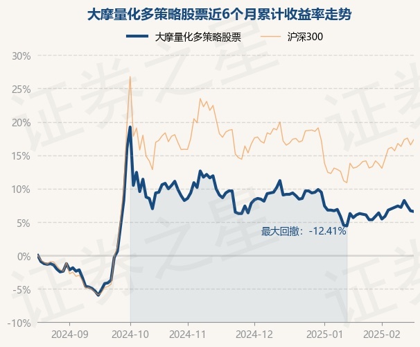 证券之星消息,2月19日,大摩量化多策略股票最新单位净值为1.037元,累计净值为1.037元,较前一交易日下跌0.1%。历史数据显示该基金近1个月上涨0.29%,近3个月下跌2.54%,近6个月上涨6.58%,近1年上涨5.92%。该基金近6个月的累计收益率走势如下图:
