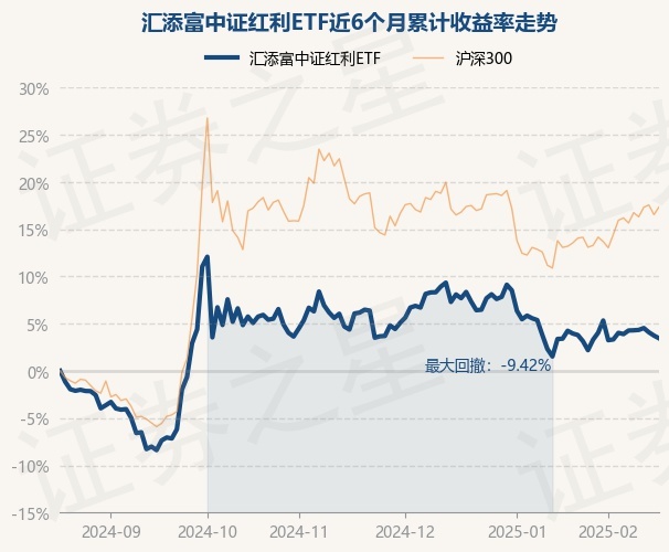 证券之星消息,2月19日,汇添富中证红利ETF最新单位净值为1.0392元,累计净值为1.0762元,较前一交易日下跌0.28%。历史数据显示该基金近1个月下跌0.49%,近3个月下跌2.56%,近6个月上涨3.47%,近1年上涨3.74%。该基金近6个月的累计收益率走势如下图: