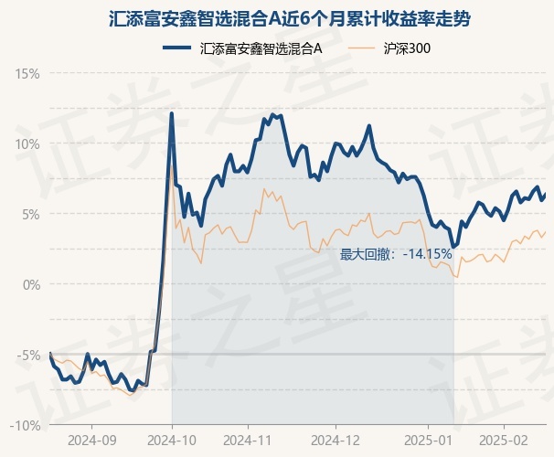 证券之星消息,2月19日,汇添富安鑫智选混合A最新单位净值为0.775元,累计净值为1.11元,较前一交易日上涨0.65%。历史数据显示该基金近1个月上涨1.97%,近3个月下跌4.67%,近6个月上涨22.63%,近1年上涨15.67%。该基金近6个月的累计收益率走势如下图: