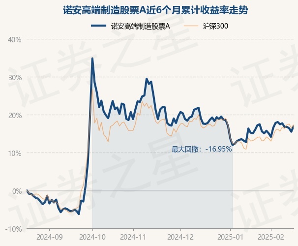 证券之星消息,2月19日,诺安高端制造股票A最新单位净值为1.371元,累计净值为1.371元,较前一交易日上涨1.26%。历史数据显示该基金近1个月上涨0.81%,近3个月下跌3.65%,近6个月上涨16.98%,近1年上涨16.28%。该基金近6个月的累计收益率走势如下图: