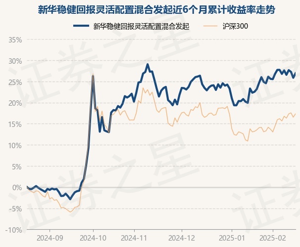 证券之星消息,2月19日,新华稳健回报灵活配置混合发起最新单位净值为1.2707元,累计净值为1.2707元,较前一交易日上涨0.85%。历史数据显示该基金近1个月上涨3.02%,近3个月上涨3.35%,近6个月上涨26.93%,近1年上涨19.01%。该基金近6个月的累计收益率走势如下图: