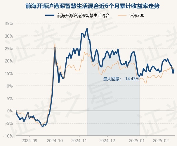 证券之星消息,2月19日,前海开源沪港深智慧生活混合最新单位净值为1.189元,累计净值为1.189元,较前一交易日上涨1.71%。历史数据显示该基金近1个月下跌0.17%,近3个月下跌4.42%,近6个月上涨16.91%,近1年上涨19.14%。该基金近6个月的累计收益率走势如下图: