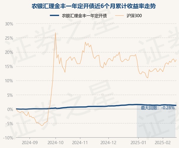 证券之星消息,2月19日,农银汇理金丰一年定开债最新单位净值为1.2889元,累计净值为1.2974元,较前一交易日上涨0.01%。历史数据显示该基金近1个月下跌0.05%,近3个月上涨0.39%,近6个月上涨1.27%,近1年上涨2.59%。该基金近6个月的累计收益率走势如下图: