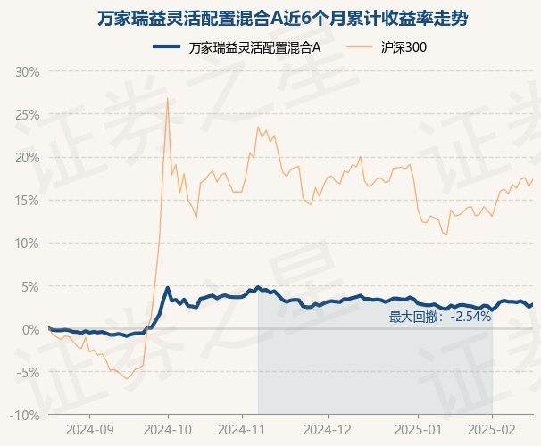 证券之星消息,2月19日,万家瑞益灵活配置混合A最新单位净值为1.5637元,累计净值为1.5637元,较前一交易日上涨0.27%。历史数据显示该基金近1个月上涨0.04%,近3个月下跌0.47%,近6个月上涨2.77%,近1年上涨2.45%。该基金近6个月的累计收益率走势如下图: