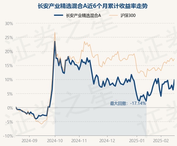 证券之星消息,2月19日,长安产业精选混合A最新单位净值为1.0637元,累计净值为1.3037元,较前一交易日上涨3.33%。历史数据显示该基金近1个月上涨3.99%,近3个月下跌0.56%,近6个月上涨9.81%,近1年上涨2.92%。该基金近6个月的累计收益率走势如下图: