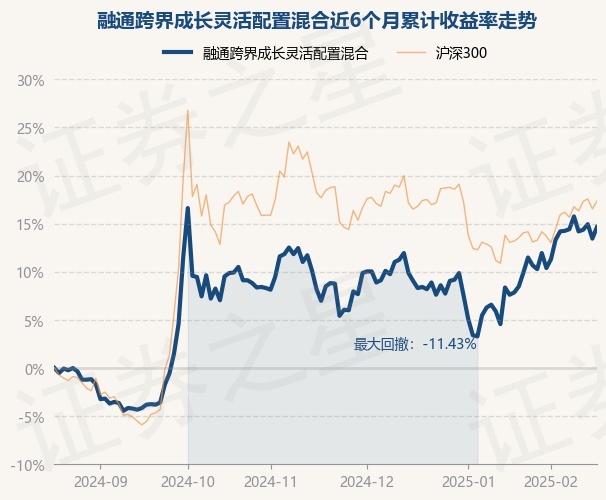证券之星消息,2月19日,融通跨界成长灵活配置混合最新单位净值为1.987元,累计净值为1.987元,较前一交易日上涨1.07%。历史数据显示该基金近1个月上涨5.69%,近3个月上涨5.69%,近6个月上涨14.66%,近1年上涨17.57%。该基金近6个月的累计收益率走势如下图: