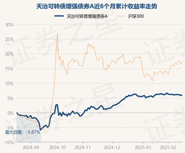 证券之星消息,2月19日,天治可转债增强债券A最新单位净值为1.5116元,累计净值为1.5116元,较前一交易日下跌0.11%。历史数据显示该基金近1个月下跌0.39%,近3个月上涨3.97%,近6个月上涨5.82%,近1年上涨8.27%。该基金近6个月的累计收益率走势如下图: