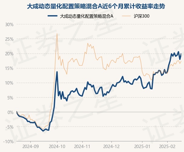 证券之星消息,2月19日,大成动态量化配置策略混合A最新单位净值为1.0103元,累计净值为1.0103元,较前一交易日上涨1.6%。历史数据显示该基金近1个月上涨5.71%,近3个月上涨11.46%,近6个月上涨19.85%,近1年上涨23.4%。该基金近6个月的累计收益率走势如下图: