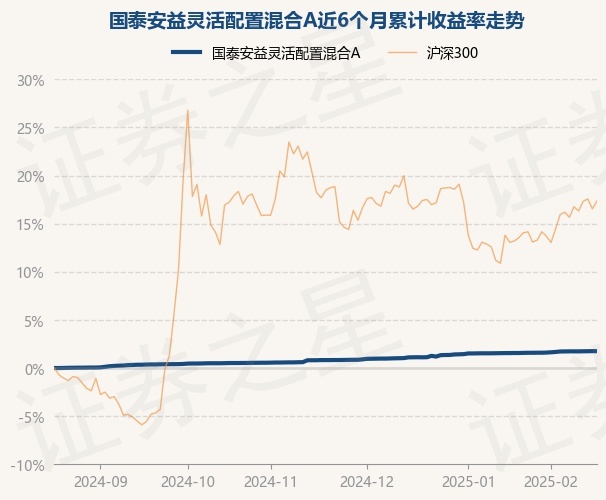 证券之星消息,2月19日,国泰安益灵活配置混合A最新单位净值为1.3693元,累计净值为1.4653元,较前一交易日上涨0.0%。历史数据显示该基金近1个月上涨0.19%,近3个月上涨0.92%,近6个月上涨1.75%,近1年下跌1.3%。该基金近6个月的累计收益率走势如下图: