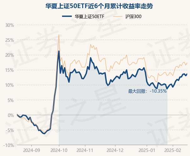 证券之星消息,2月19日,华夏上证50ETF最新单位净值为2.723元,累计净值为4.0724元,较前一交易日上涨0.47%。历史数据显示该基金近1个月上涨3.26%,近3个月下跌0.02%,近6个月上涨13.57%,近1年上涨15.45%。该基金近6个月的累计收益率走势如下图: