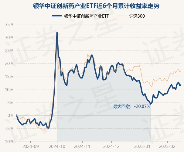 证券之星消息,2月19日,银华中证创新药产业ETF最新单位净值为0.6996元,累计净值为0.6996元,较前一交易日上涨0.29%。历史数据显示该基金近1个月上涨4.36%,近3个月下跌2.93%,近6个月上涨11.7%,近1年上涨0.69%。该基金近6个月的累计收益率走势如下图: