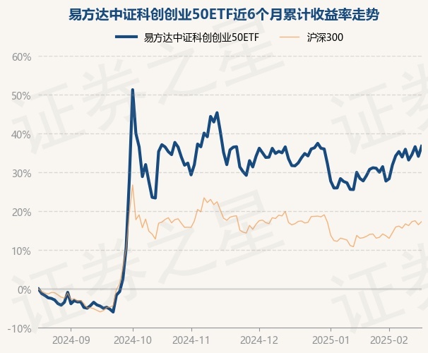证券之星消息,2月19日,易方达中证科创创业50ETF最新单位净值为0.5823元,累计净值为0.5823元,较前一交易日上涨1.94%。历史数据显示该基金近1个月上涨5.87%,近3个月上涨0.67%,近6个月上涨36.75%,近1年上涨28.15%。该基金近6个月的累计收益率走势如下图: