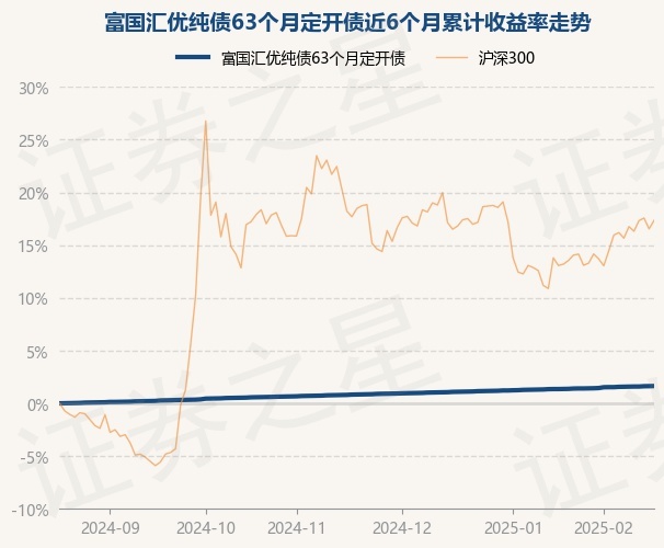 证券之星消息,2月19日,富国汇优纯债63个月定开债最新单位净值为1.0637元,累计净值为1.1707元,较前一交易日上涨0.01%。历史数据显示该基金近1个月上涨0.26%,近3个月上涨0.8%,近6个月上涨1.64%,近1年上涨3.32%。该基金近6个月的累计收益率走势如下图: