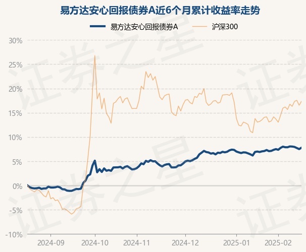 证券之星消息,2月19日,易方达安心回报债券A最新单位净值为2.0325元,累计净值为3.1315元,较前一交易日上涨0.26%。历史数据显示该基金近1个月上涨0.69%,近3个月上涨3.41%,近6个月上涨7.78%,近1年上涨9.22%。该基金近6个月的累计收益率走势如下图: