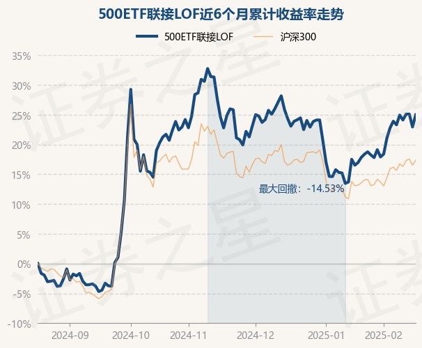 证券之星消息,2月19日,500ETF联接LOF最新单位净值为1.6604元,累计净值为1.7604元,较前一交易日上涨1.68%。历史数据显示该基金近1个月上涨6.09%,近3个月上涨0.11%,近6个月上涨25.0%,近1年上涨16.19%。该基金近6个月的累计收益率走势如下图: