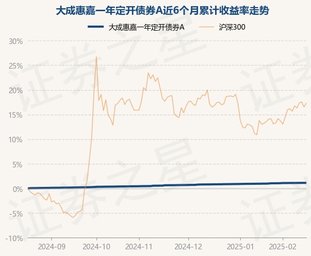 证券之星消息,2月19日,大成惠嘉一年定开债券A最新单位净值为1.0029元,累计净值为1.1287元,较前一交易日上涨0.0%。历史数据显示该基金近1个月上涨0.15%,近3个月上涨0.48%,近6个月上涨1.13%,近1年上涨2.06%。该基金近6个月的累计收益率走势如下图: