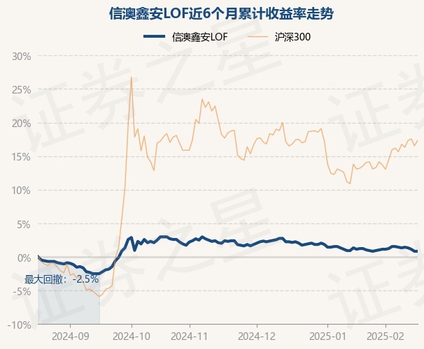 证券之星消息,2月19日,信澳鑫安LOF最新单位净值为0.998元,累计净值为1.376元,较前一交易日上涨0.0%。历史数据显示该基金近1个月下跌0.4%,近3个月下跌1.45%,近6个月上涨0.83%,近1年上涨0.83%。该基金近6个月的累计收益率走势如下图:
