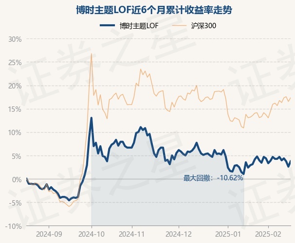 证券之星消息,2月19日,博时主题LOF最新单位净值为0.994元,累计净值为5.689元,较前一交易日上涨1.12%。历史数据显示该基金近1个月上涨0.61%,近3个月下跌2.26%,近6个月上涨3.76%,近1年上涨6.08%。该基金近6个月的累计收益率走势如下图: