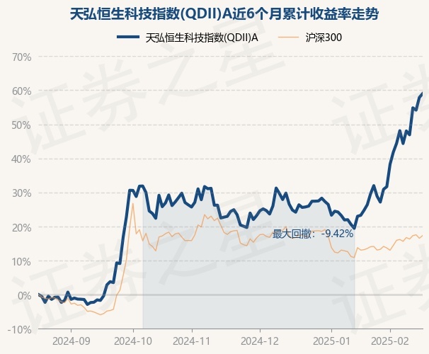 证券之星消息,2月19日,天弘恒生科技指数(QDII)A最新单位净值为0.8253元,累计净值为0.8253元,较前一交易日上涨0.7%。历史数据显示该基金近1个月上涨25.79%,近3个月上涨27.78%,近6个月上涨58.99%,近1年上涨73.67%。该基金近6个月的累计收益率走势如下图: