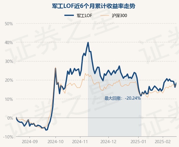 证券之星消息,2月19日,军工LOF最新单位净值为1.003元,累计净值为1.715元,较前一交易日上涨1.83%。历史数据显示该基金近1个月上涨2.24%,近3个月下跌5.56%,近6个月上涨18.28%,近1年上涨20.7%。该基金近6个月的累计收益率走势如下图: