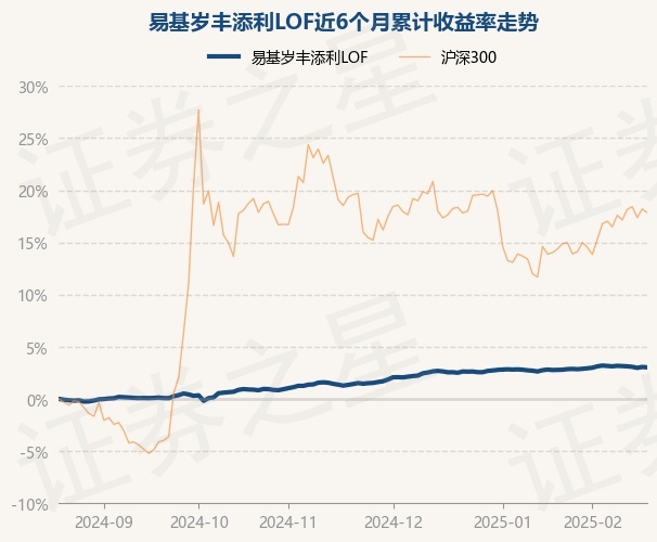 证券之星消息,2月20日,易基岁丰添利LOF最新单位净值为1.6943元,累计净值为2.6053元,较前一交易日下跌0.04%。历史数据显示该基金近1个月上涨0.22%,近3个月上涨1.58%,近6个月上涨3.03%,近1年上涨5.01%。该基金近6个月的累计收益率走势如下图: