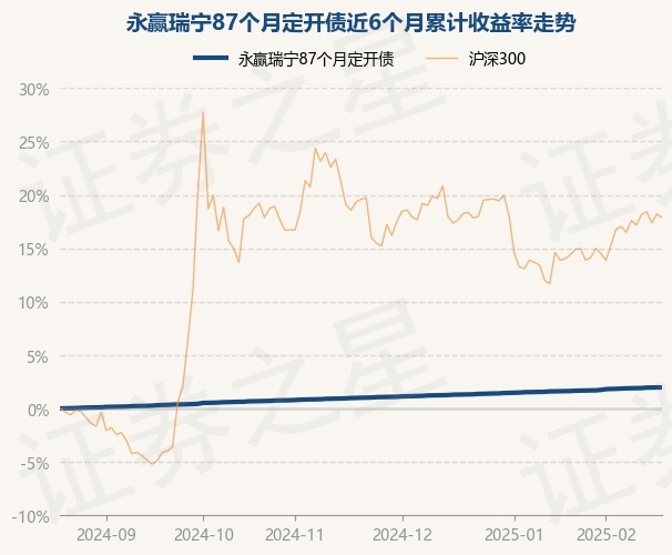证券之星消息,2月20日,永赢瑞宁87个月定开债最新单位净值为1.1005元,累计净值为1.1825元,较前一交易日上涨0.0%。历史数据显示该基金近1个月上涨0.31%,近3个月上涨0.96%,近6个月上涨1.98%,近1年上涨3.96%。该基金近6个月的累计收益率走势如下图: