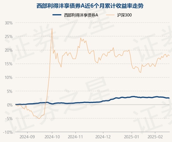 证券之星消息,2月20日,西部利得沣享债券A最新单位净值为1.0627元,累计净值为1.0927元,较前一交易日下跌0.12%。历史数据显示该基金近1个月下跌0.22%,近3个月上涨1.55%,近6个月上涨2.32%,近1年上涨4.63%。该基金近6个月的累计收益率走势如下图: