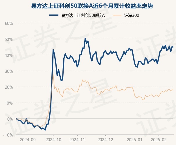 证券之星消息,2月20日,易方达上证科创50联接A最新单位净值为0.805元,累计净值为0.805元,较前一交易日下跌0.14%。历史数据显示该基金近1个月上涨6.33%,近3个月上涨2.97%,近6个月上涨44.91%,近1年上涨34.08%。该基金近6个月的累计收益率走势如下图: