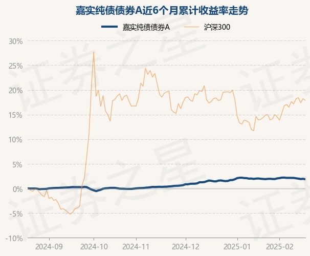 证券之星消息,2月20日,嘉实纯债债券A最新单位净值为1.365元,累计净值为1.5526元,较前一交易日下跌0.08%。历史数据显示该基金近1个月下跌0.02%,近3个月上涨1.51%,近6个月上涨1.87%,近1年上涨4.06%。该基金近6个月的累计收益率走势如下图: