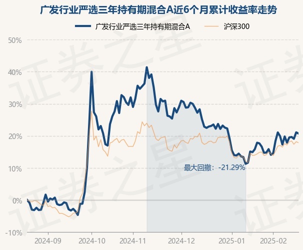 广发行业严选三年持有期混合A为混合型-偏股基金,根据最新一期基金季报显示,该基金资产配置:股票占净值比94.83%,债券占净值比1.89%,现金占净值比3.63%。基金十大重仓股如下: