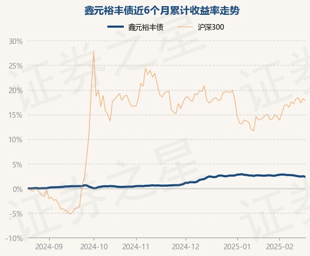 证券之星消息,2月20日,鑫元裕丰债最新单位净值为1.0985元,累计净值为1.1085元,较前一交易日下跌0.12%。历史数据显示该基金近1个月下跌0.24%,近3个月上涨1.78%,近6个月上涨2.36%,近1年上涨4.98%。该基金近6个月的累计收益率走势如下图: