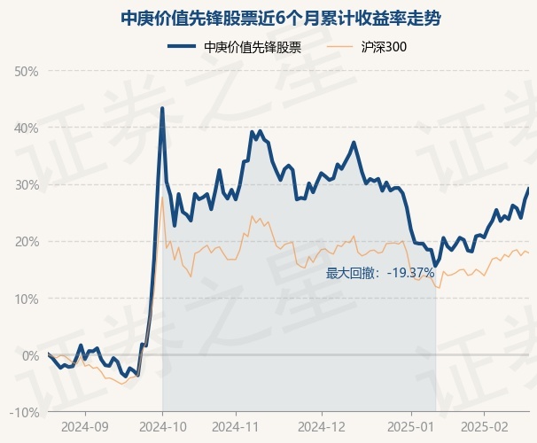 证券之星消息,2月20日,中庚价值先锋股票最新单位净值为0.9718元,累计净值为0.9718元,较前一交易日上涨1.46%。历史数据显示该基金近1个月上涨7.12%,近3个月下跌3.09%,近6个月上涨29.13%,近1年上涨19.12%。该基金近6个月的累计收益率走势如下图: