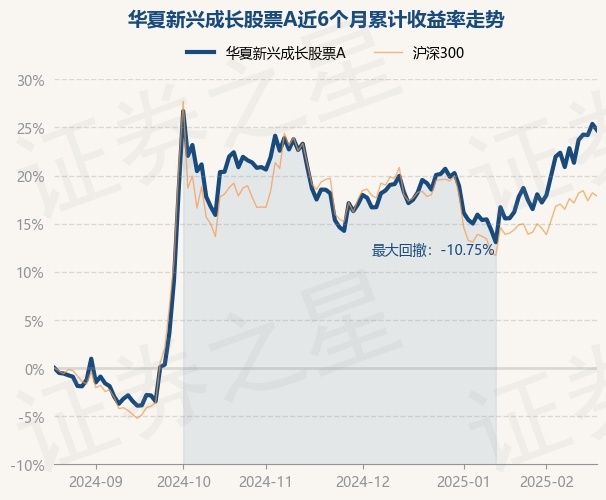 证券之星消息,2月20日,华夏新兴成长股票A最新单位净值为0.7622元,累计净值为0.7622元,较前一交易日下跌0.51%。历史数据显示该基金近1个月上涨5.88%,近3个月上涨5.23%,近6个月上涨24.73%,近1年上涨29.19%。该基金近6个月的累计收益率走势如下图: