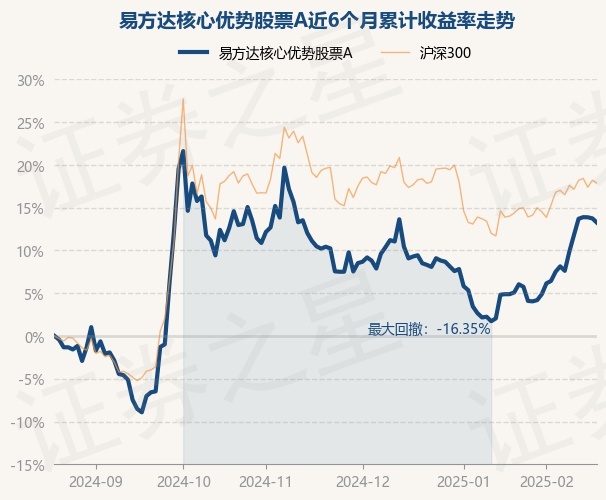 证券之星消息,2月20日,易方达核心优势股票A最新单位净值为0.7169元,累计净值为0.7169元,较前一交易日下跌0.44%。历史数据显示该基金近1个月上涨6.79%,近3个月上涨2.55%,近6个月上涨13.24%,近1年上涨10.0%。该基金近6个月的累计收益率走势如下图: