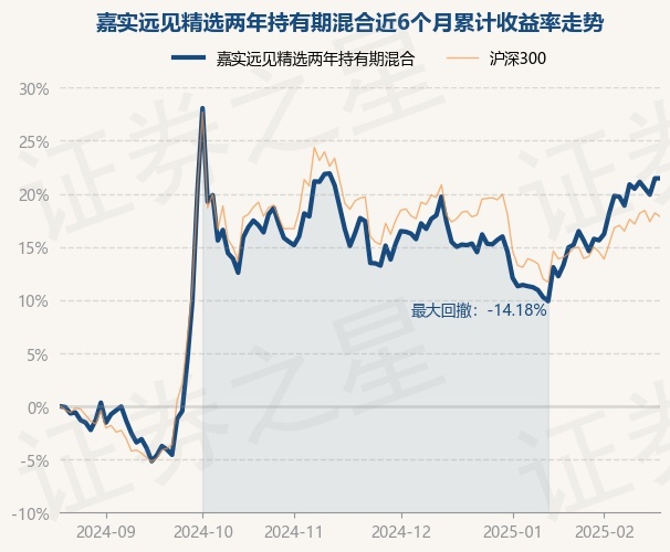 证券之星消息,2月20日,嘉实远见精选两年持有期混合最新单位净值为0.6377元,累计净值为0.6377元,较前一交易日上涨0.0%。历史数据显示该基金近1个月上涨6.23%,近3个月上涨3.96%,近6个月上涨22.38%,近1年上涨11.45%。该基金近6个月的累计收益率走势如下图: