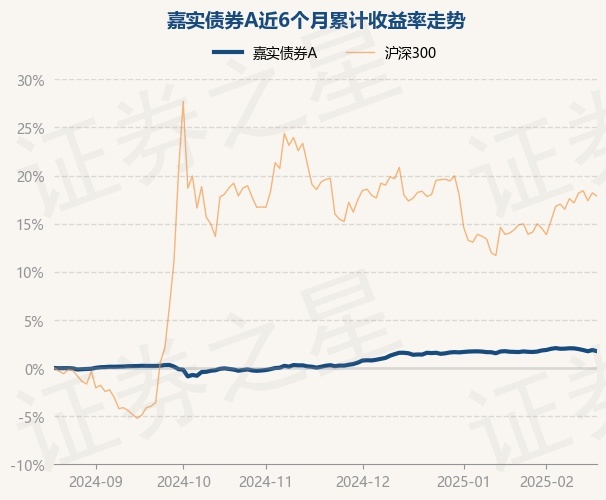 证券之星消息,2月20日,嘉实债券A最新单位净值为1.2164元,累计净值为2.5273元,较前一交易日下跌0.11%。历史数据显示该基金近1个月上涨0.09%,近3个月上涨1.51%,近6个月上涨1.75%,近1年上涨3.69%。该基金近6个月的累计收益率走势如下图: